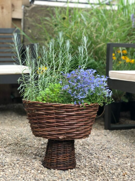 Turn two basic baskets into an urn planter… You will need two baskets – search thrift stores for a smaller,