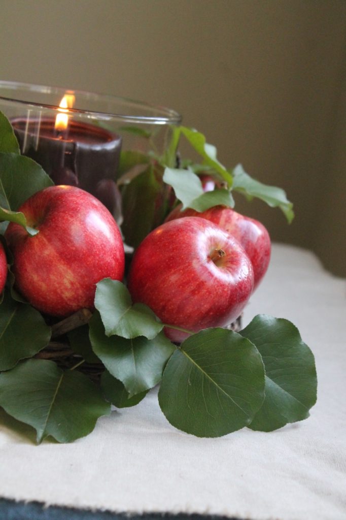 When I’m pulling together a centerpiece for our table, I often check the produce section for inspiration. Apples, clementines, artichokes, grapes, etc., can all bring color, life and an unexpected beauty to your table setting. You can make this one in under a minute and you can even arrange it on a small tray and bring it as a hostess gift in lieu of flowers…