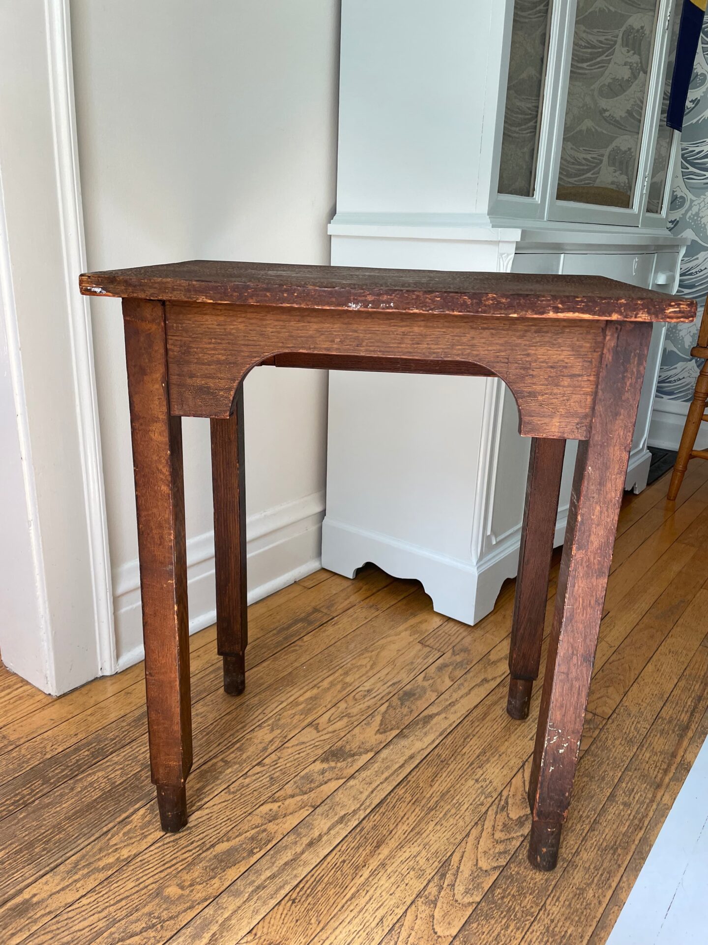 When thrifting, don’t overlook a simple vintage wooden table. With a couple of quick additions it can be revived into something very special…