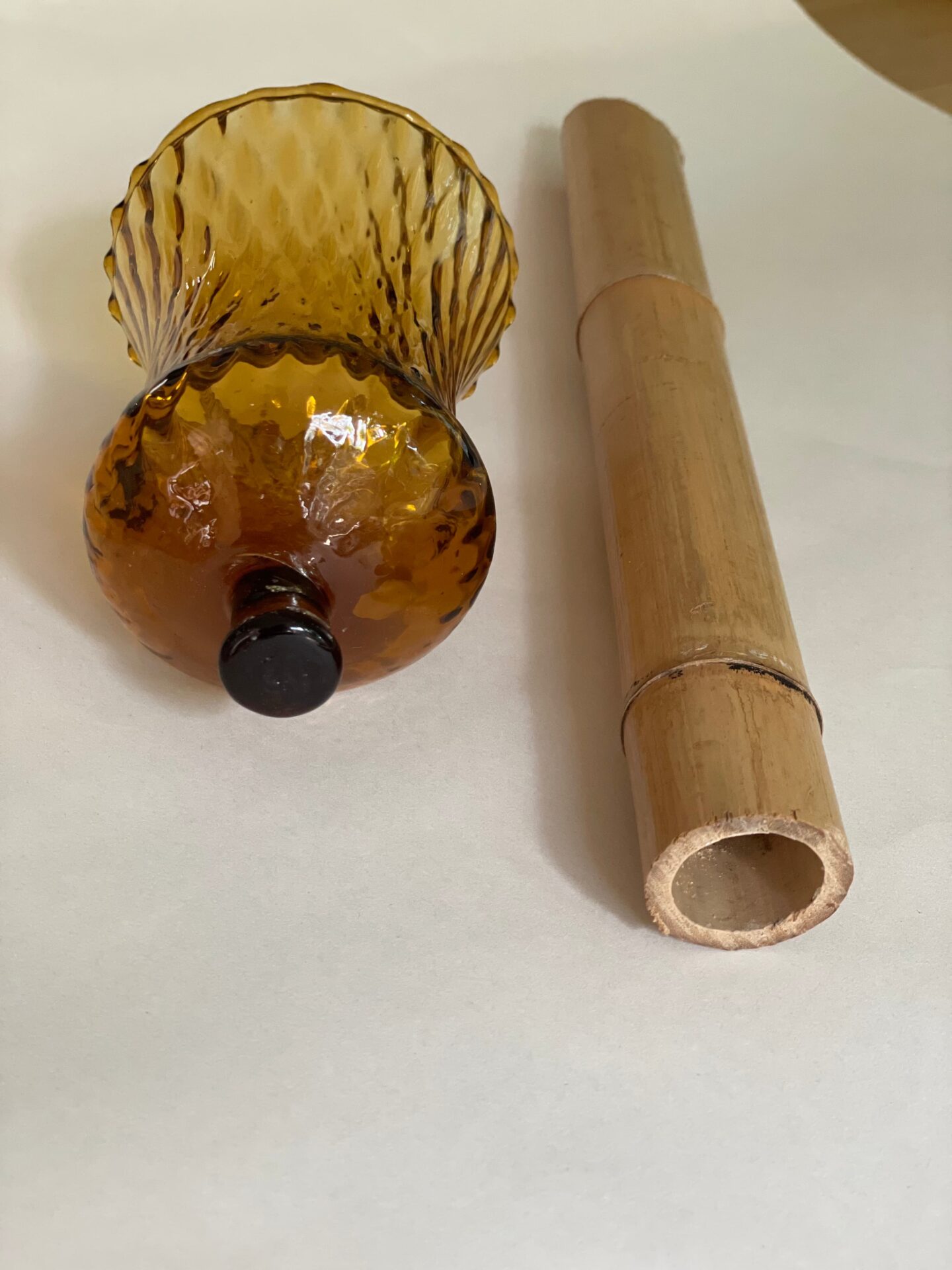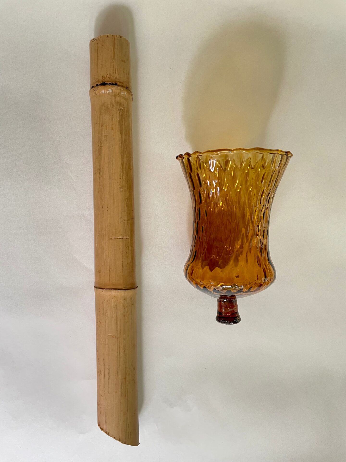 Bamboo is hollow except at the nodes – be sure to cut the top a few inches away from the node to allow for an opening to insert the peg votive.