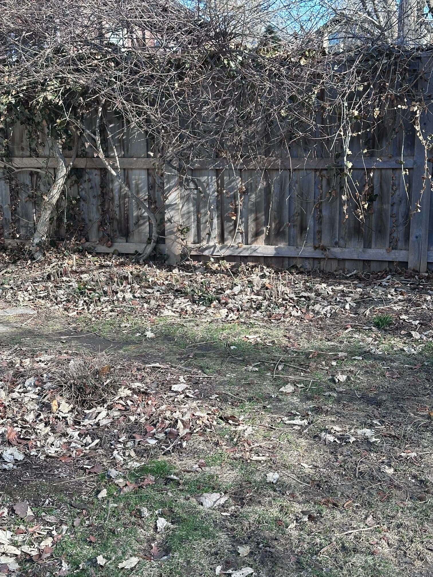 This is what our garden looks like now. We leave the leaves to form a natural, eco-friendly and nutritive mulch that provides habitat for all sorts of essential creatures.
