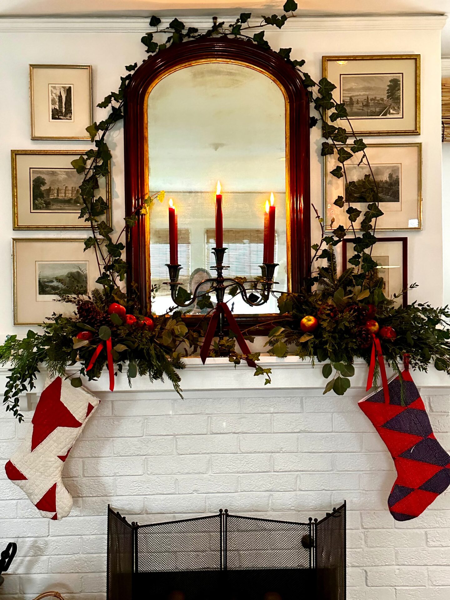 As we got closer to Christmas, we added our daughters’ stockings (purchased from Red Chair Stitchery on Etsy).