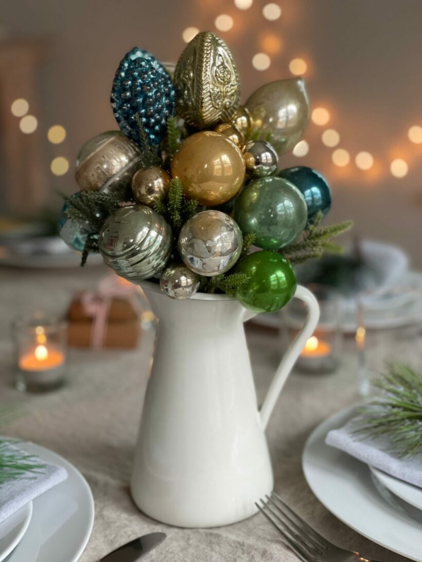 If you have a large ornament collection, like I do, here’s a quick project that puts to use a few of those extras that didn’t make it onto the tree…